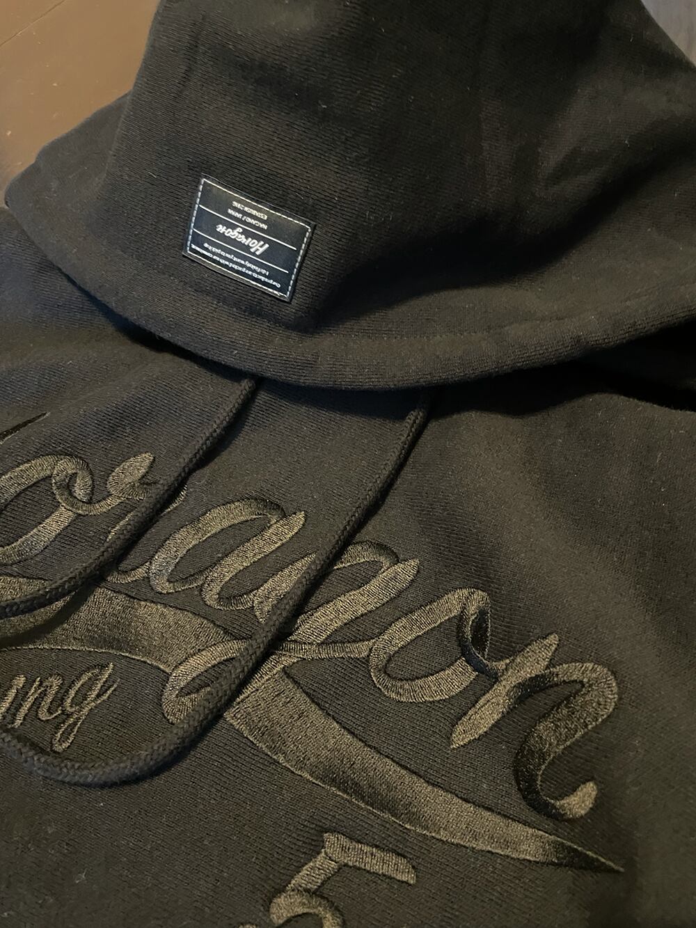 フード部分のタグ、袖口の刺繍等 細部にもこだわりました。